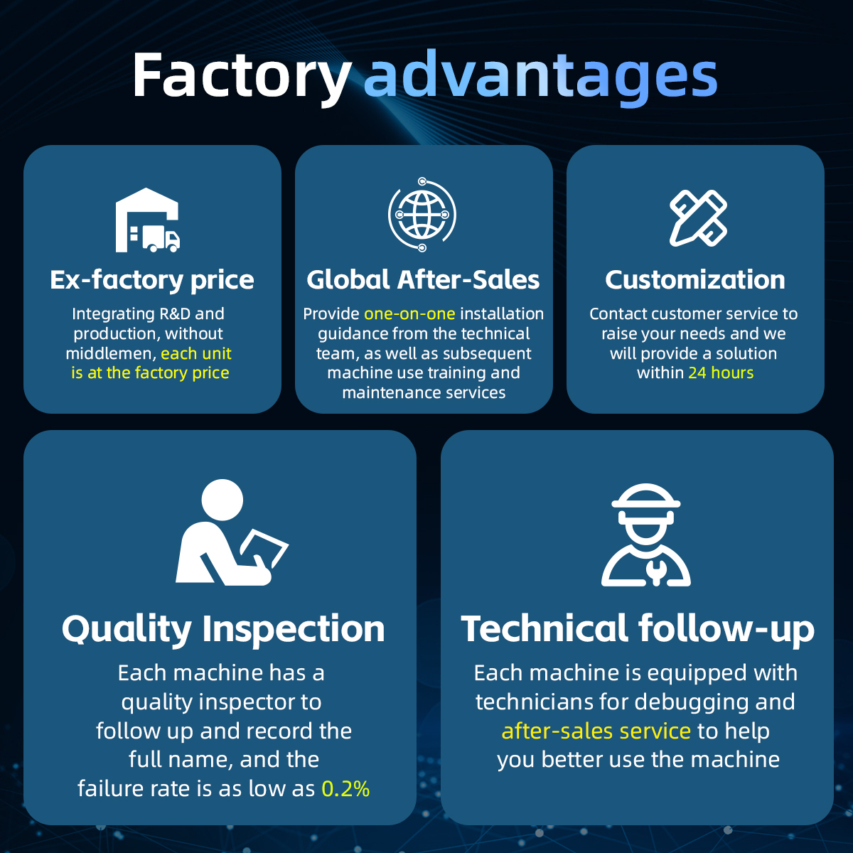 | আকার এবং ওজন | মেশিনঃ ১২০০*৬২০*১৪১৬ মিমি ১৩০ কেজি প্যাকেজিংঃ 1270*1050*700 মিমি 173 কেজি |